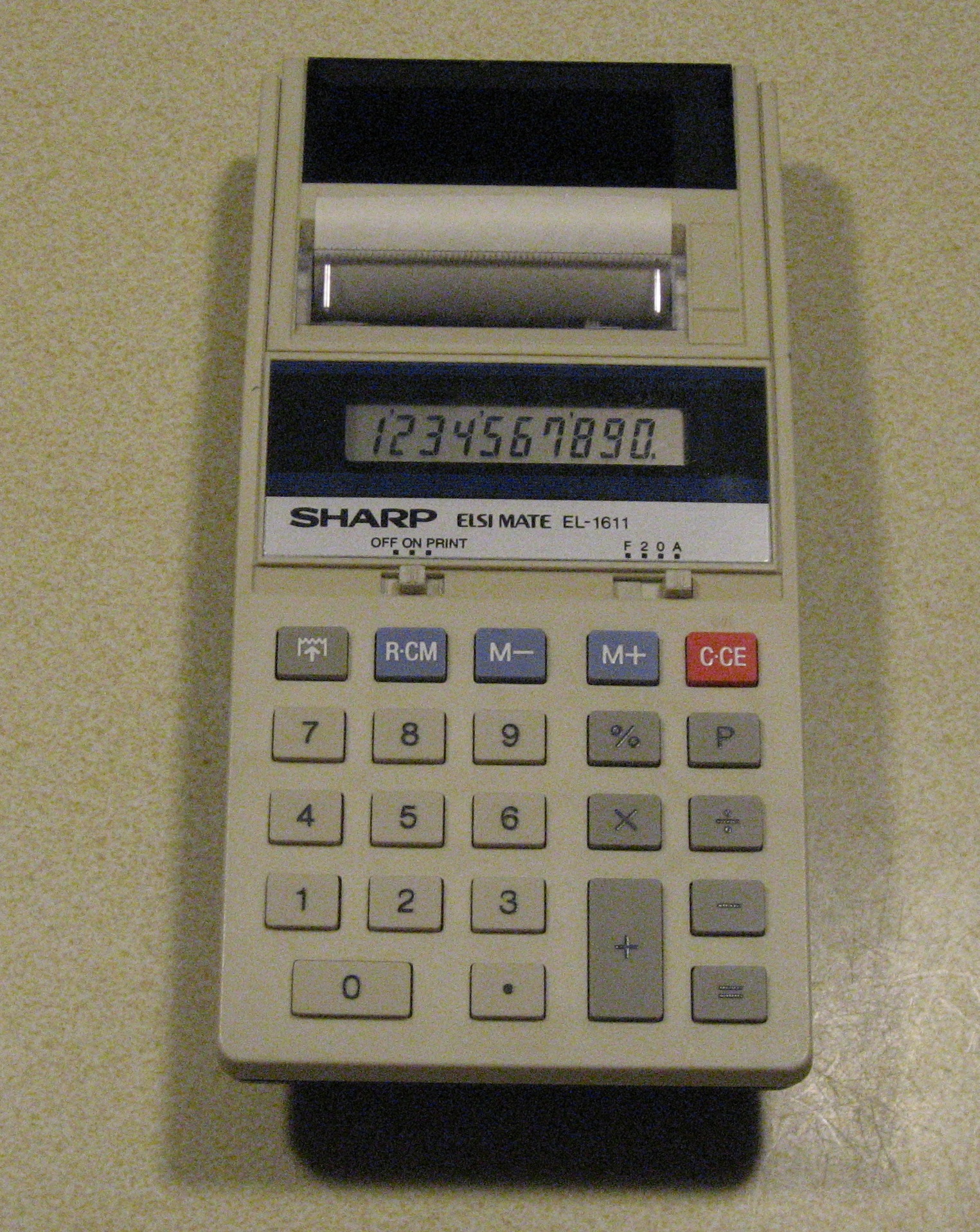This Sharp EL-1611 also came from my father-in-law at the same time as the BA II Plus. This is my only printing calculator. When I first got it, the printing was good. By now the ribbon has continued to dry out and the printing is getting faint, but it still works.