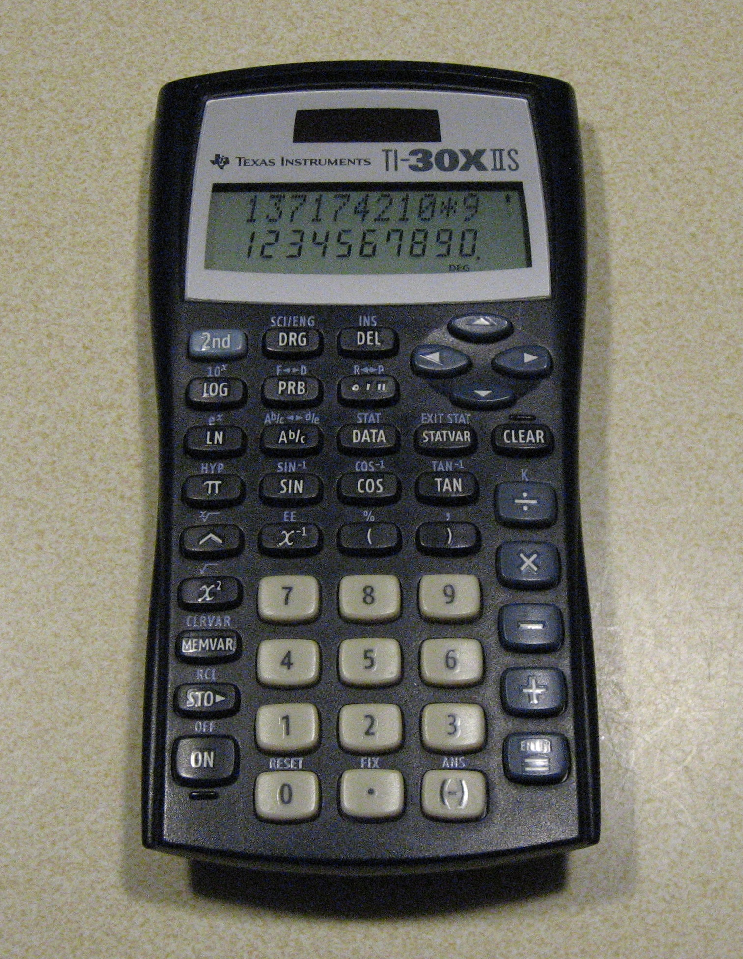This TI-30X IIS (can TI find enough suffixes?) was a gift from Harris Corp. Supposedly, a distant relative to my 1984 TI-30III, but it is hard to see much resemblance in looks or functionality.