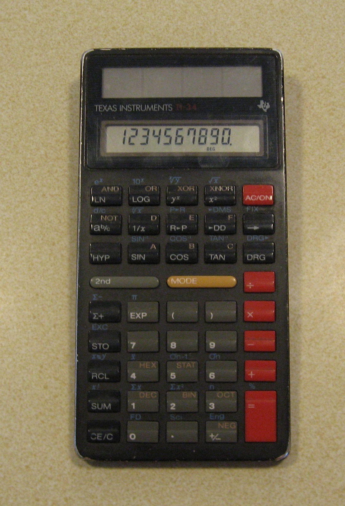 I bought this TI-34 while I was in college because it had boolean logic and hexadecimal conversion. This was 1988. I remember the day I bought it there was an ice storm, and my car slid off the road but I got traction once I got 2 wheels in the grass and corrected and kept going. I was fearless or foolish in those days.