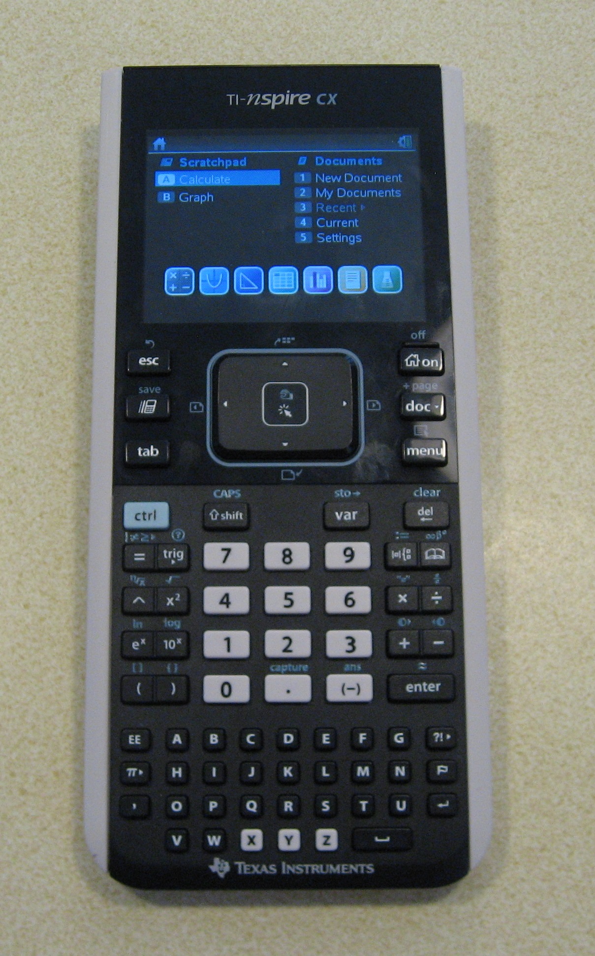 This TI-nspire CX is the calculator my son needed in 8th grade for the 2016 school year. It starts to blur the line between a calculator and computer. It has a touchpad with onscreen mouse cursor, it has document storage, a graphical user interface, and an alpha-numeric keyboard.